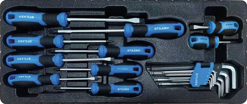 – 10 destornilladores: 6×38-5×75-6×100-8x150mm PH2x38-PH1x75-PH2x100-PH3x150mm PZ1x75-PZ2x100