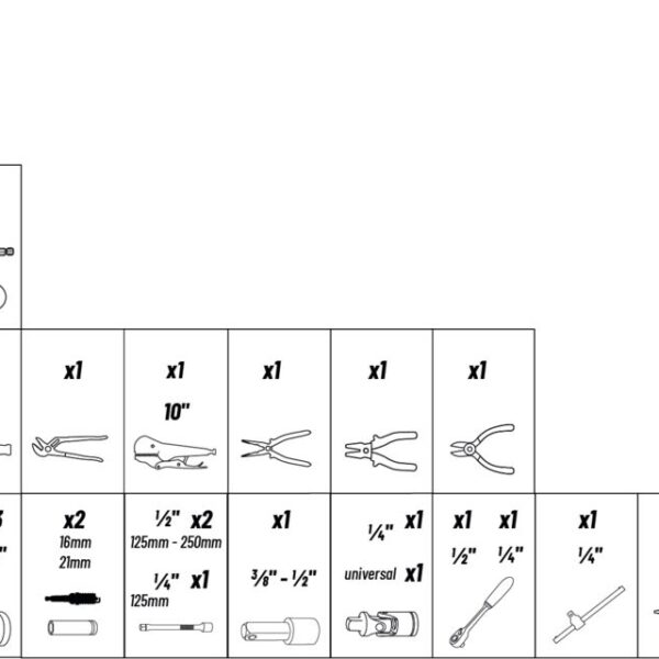 – 14 vasos de 1/2″: 14-15-16-17-18-19-20-21-22-23-24-27-30-32 mm