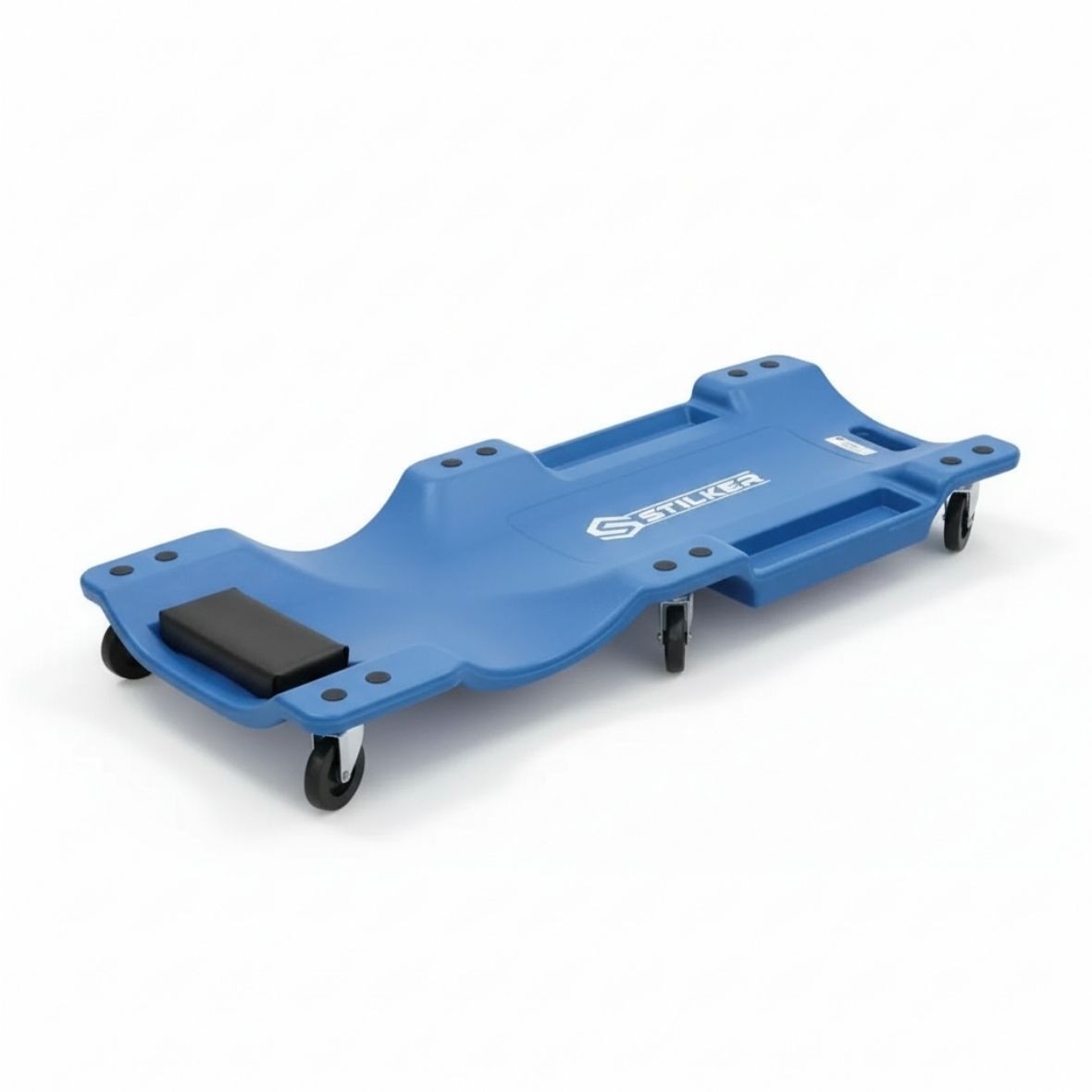 Carro de inspección fabricado en una sola pieza de PEAD para máxima resistencia y durabilidad. Ideal para trabajos bajo el vehículo en entornos de taller.