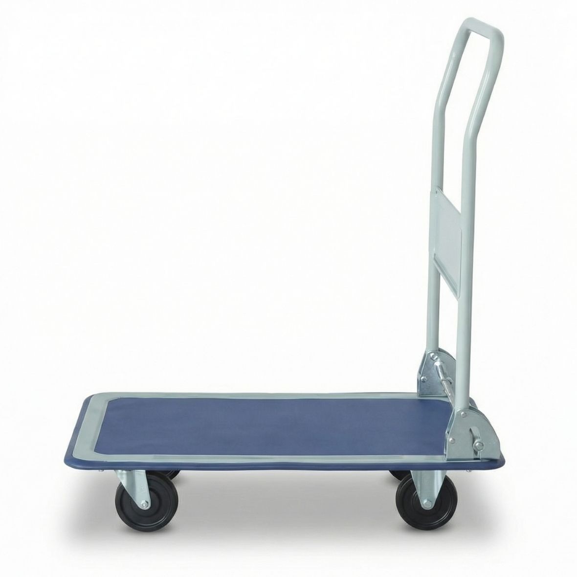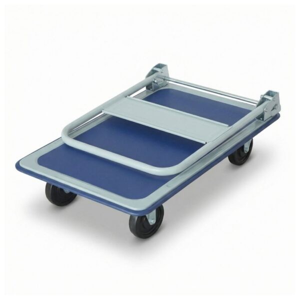 Carro resistente y estable para el desplazamiento de cargas dentro del taller o almacén. Su sistema de cuatro ruedas ofrece un movimiento fluido y seguro, con dos ruedas giratorias para maniobras precisas y dos fijas para mayor estabilidad.