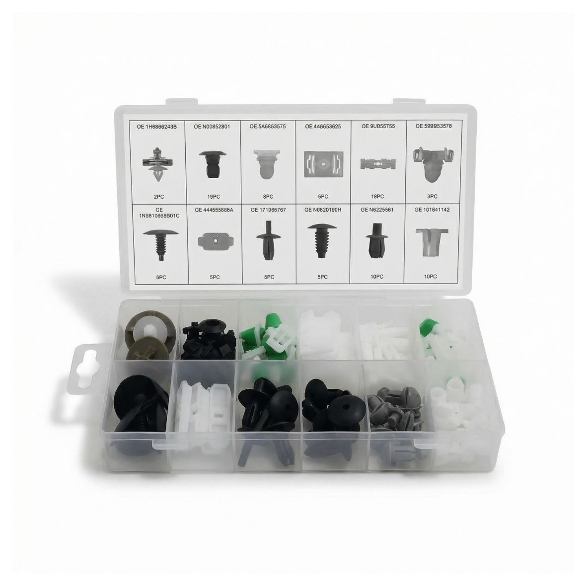 OE 1H0868243B (2 uds.), OE N90833801 (10 uds.), OE 3A0853575 (8 uds.), OE 4A0853825 (5 uds.), OE 6U085733 (15 uds.), OE 3B0853576 (3 uds.), OE 1H0819055B01C (6 uds.), OE 443853909A (5 uds.), OE 171885767 (6 uds.), OE N9020160H (5 uds.), OE N0385501 (10 uds.), OE 191941142 (10 uds.).