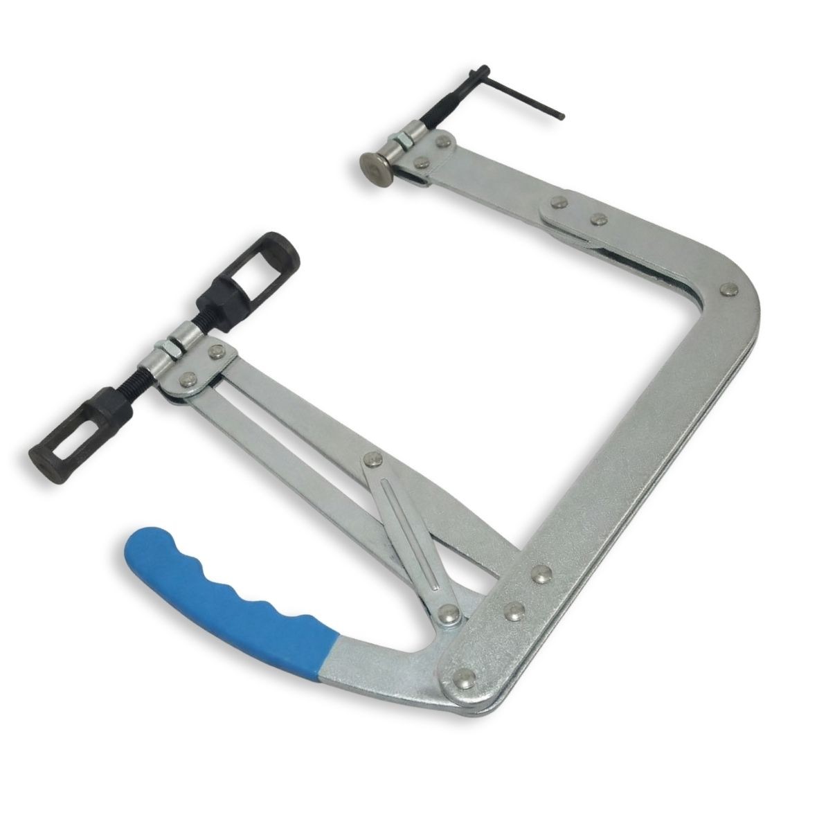 Elevador especialmente diseñado para motores gasolina y diésel multiválvulas, pensado para actuar en válvulas de difícil acceso o profundamente empotradas. Facilita el desmontaje seguro del muelle de la válvula sin dañar componentes adyacentes.