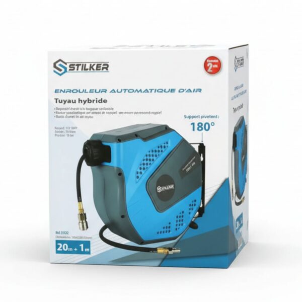 Carrete neumático automático orientable, con manguera híbrida extra flexible resistente a las variaciones de temperatura 20+1M
