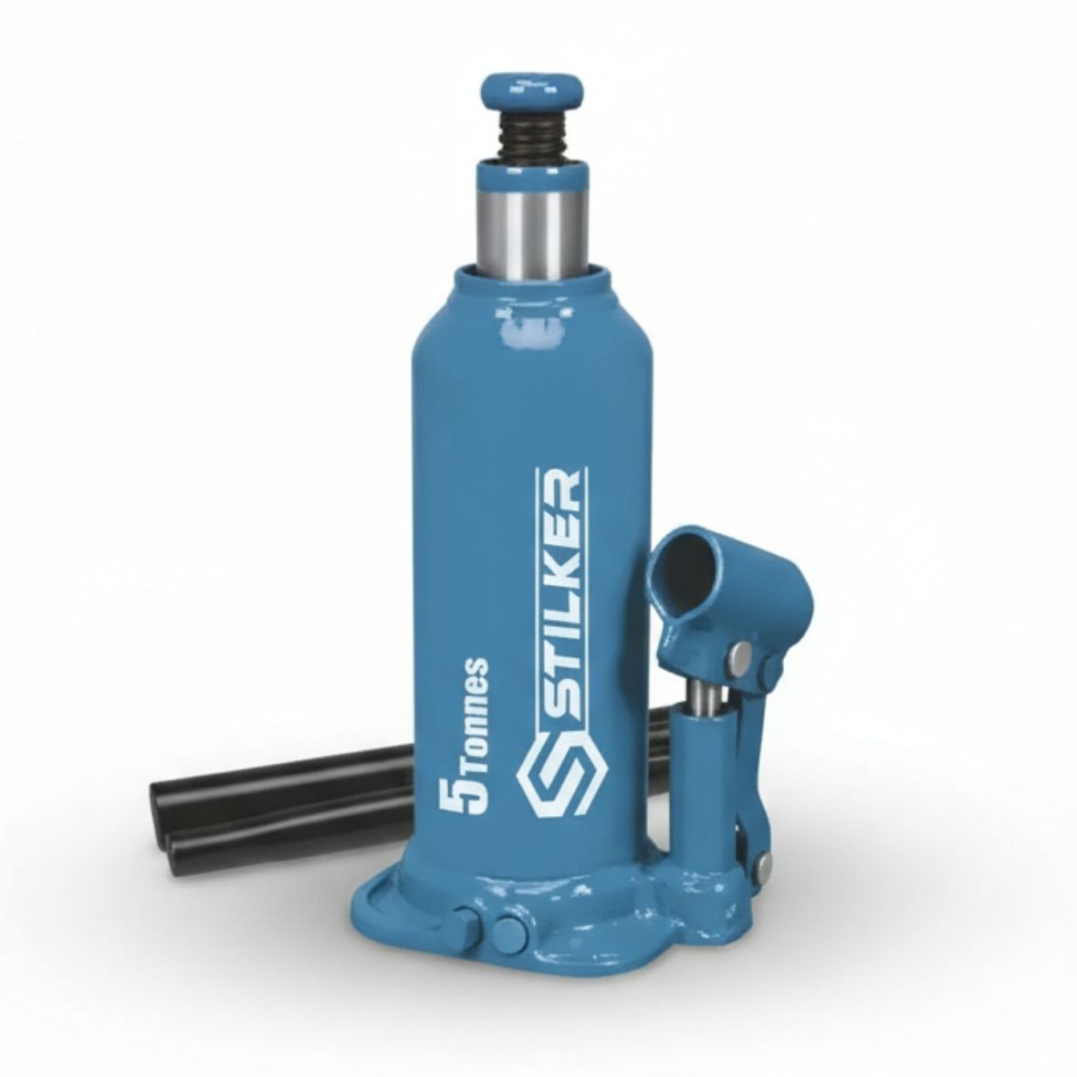 Gato de botella compacto y muy resistente, ideal para trabajos de elevación en vehículos ligeros o maquinaria de menor tamaño. Su diseño en hierro fundido ofrece firmeza y durabilidad incluso en uso intensivo.
