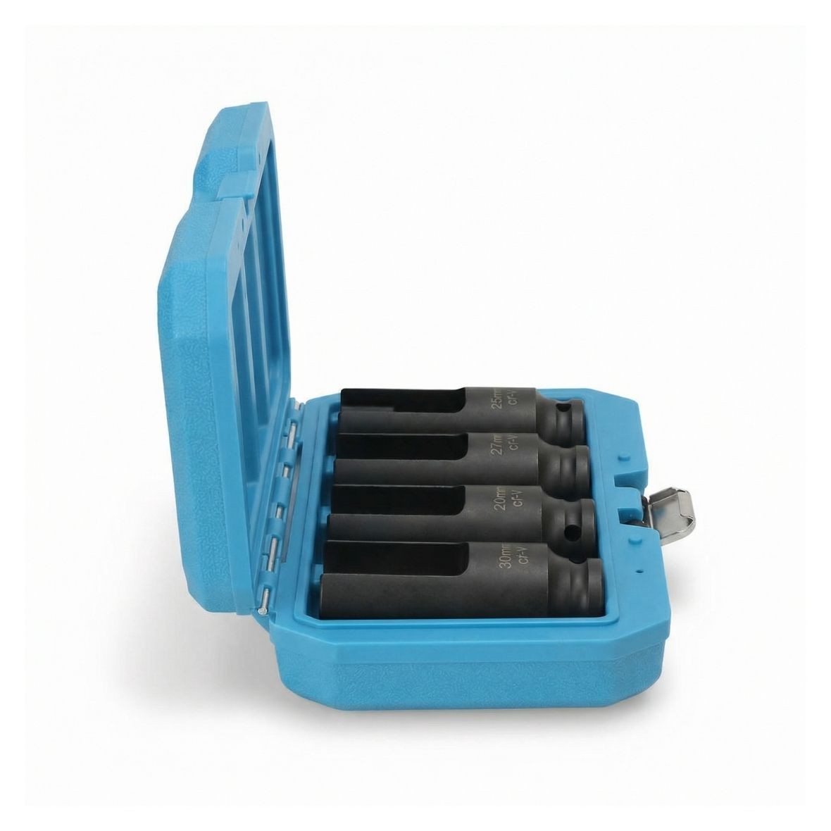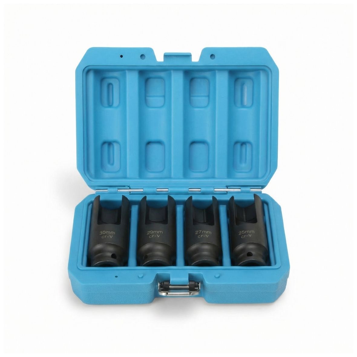 Incluye vasos de 25, 27, 29 y 30 mm con cuadradillo de 1/2″, ofreciendo cobertura para las aplicaciones más habituales en mecánica diésel.